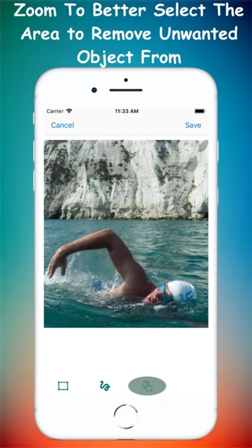 After selection you are you are taken to screen with preview and adjustable rectangle/lasso select with actions(specify more than 1 areas) to specify the unwanted object you want to remove.