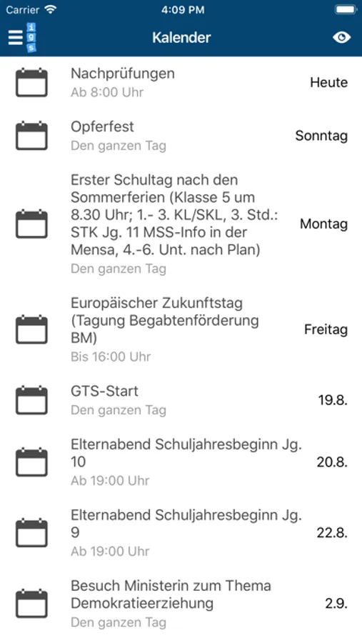 Die IGS App ermöglicht eine schnelle Anbindung an das Portal der IGS Mainz Bretzenheim. Stunden- und Vertretungspläne sind schnell und individualisiert verfügbar. Das digitale Klassenbuch- und Fehlzeitenmanagement ist ohne Probleme möglich. Für Chatnachrichten, Vertretungsplan-, Stundenplanänderungen und Elternbriefe werden Push Nachrichten verschickt.