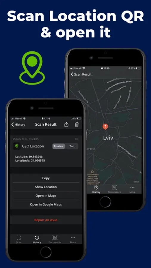 * GEO location: show location on map or open in Apple Maps or Google Maps
