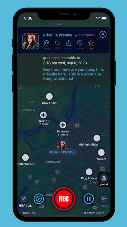 Explore globally and listen to regional broadcasts. Add a scanning distance to limit broadcasts to your desired region, and have the map follow you while you travel.