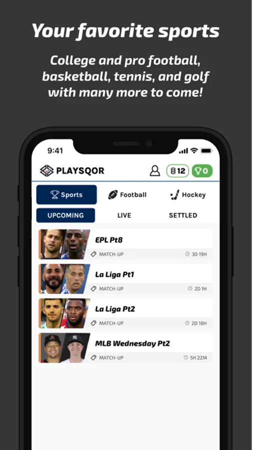 PlaySqor is a skill-based sports matchup game. Pick four to ten players using your skills and knowledge to win real money! We offer matchups of athlete vs. athlete that are prepared by our expert game making team, and presented in a one-on-one selection process. Customers must pick four to ten athletes using their skills and knowledge of athletes and Performance Scoring to win real money. The goal is to select the athletes who will generate a higher Performance Scores in their respective matchup.