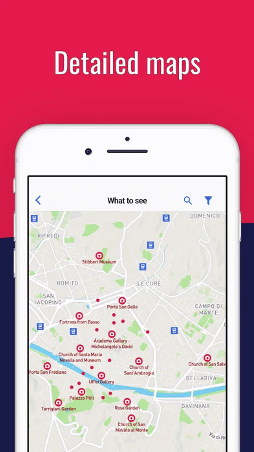 Never get lost and keep your orientation. See your location on the Florence offline map, even without an internet connection. Find streets, attractions, restaurants, hotels, local nightlife and other POIs – and get guided in the walking direction of places you want to see.