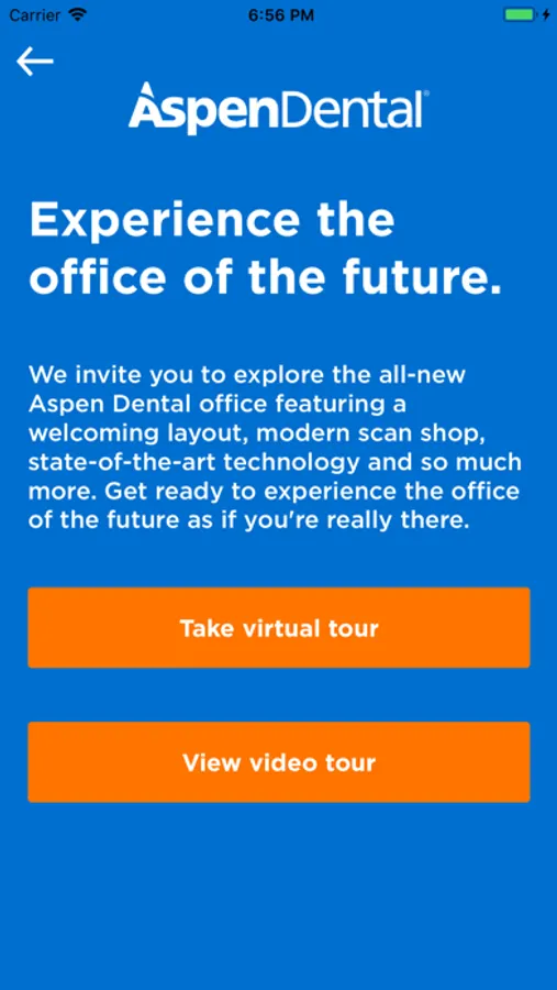 We invite you to explore the all-new Aspen Dental office featuring a welcoming layout, modern scan shop, state-of-the-art technology and so much more. Get ready to experience the office of the future as if you're really there. App supports cardboard VR type devices (not required).