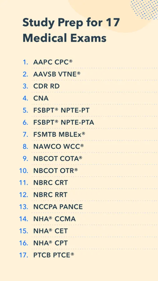 Medical Pocket Prep gives you access to study prep for 16 different medical exams all in one place, with 500-1200 practice questions for each exam.