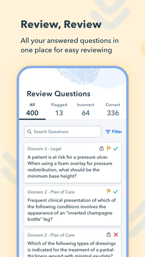 - Sort by flagged or incorrect questions