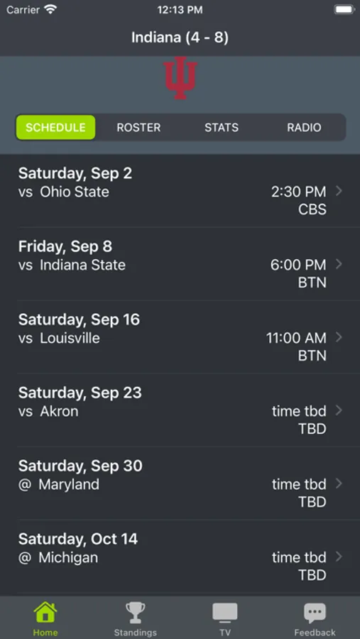 Indiana Football Schedules provides scores, links to live radio, schedules, tv channels, player profiles, and game matchups in one location.