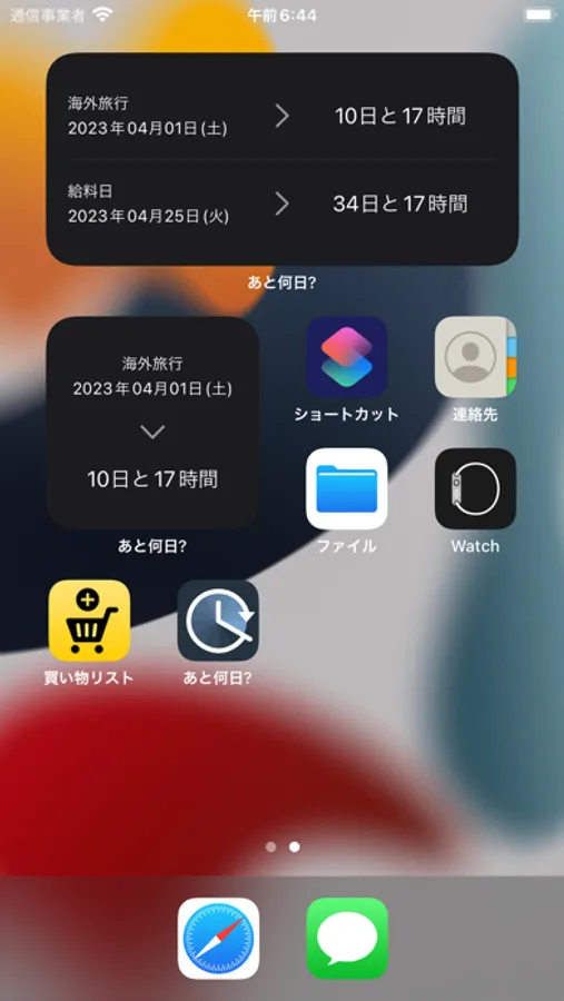 あと何日?はイベントや記念日、または自分で設定した目標日付までの残りの日数を簡単に表示することができます。