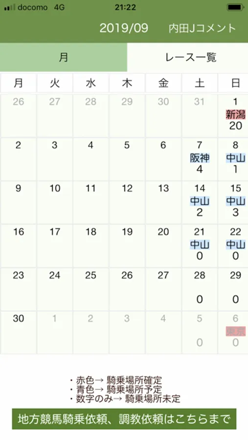 「来週の日曜日、内田騎手はどこで騎乗するのかな?」「今週の土曜日の〇R、だれか騎手空いていないかな?」と思ったら、アプリを開いてください。