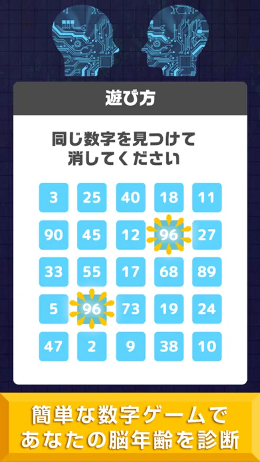 簡単操作のパズルゲームであなたの脳年齢を診断します。