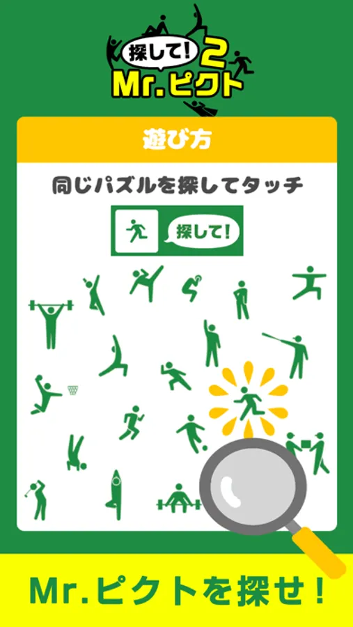 色んなポーズのピクトの中から同じものを見つけてタップ!