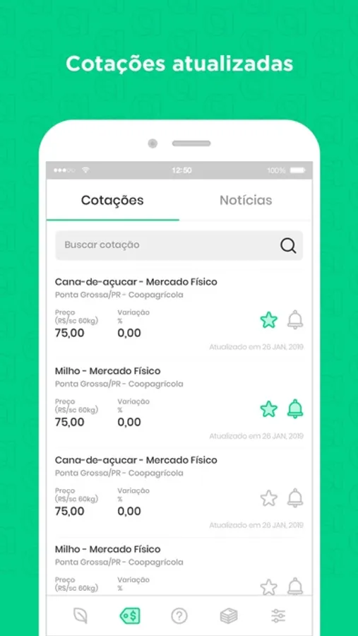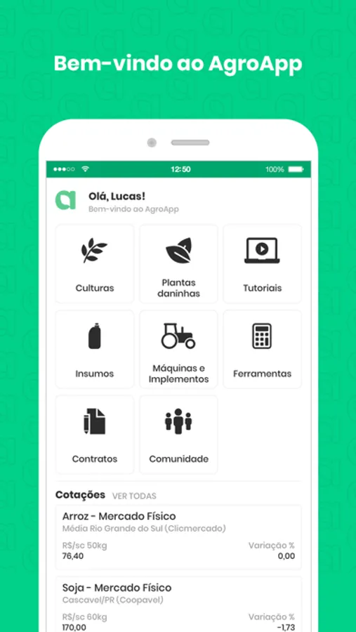 Além de informações agronômicas, o AgroApp disponibiliza notícias e cotações, o que auxilia na tomada de decisão do produtor, no que diz respeito a comercialização dos produtos da propriedade e compra de insumos.