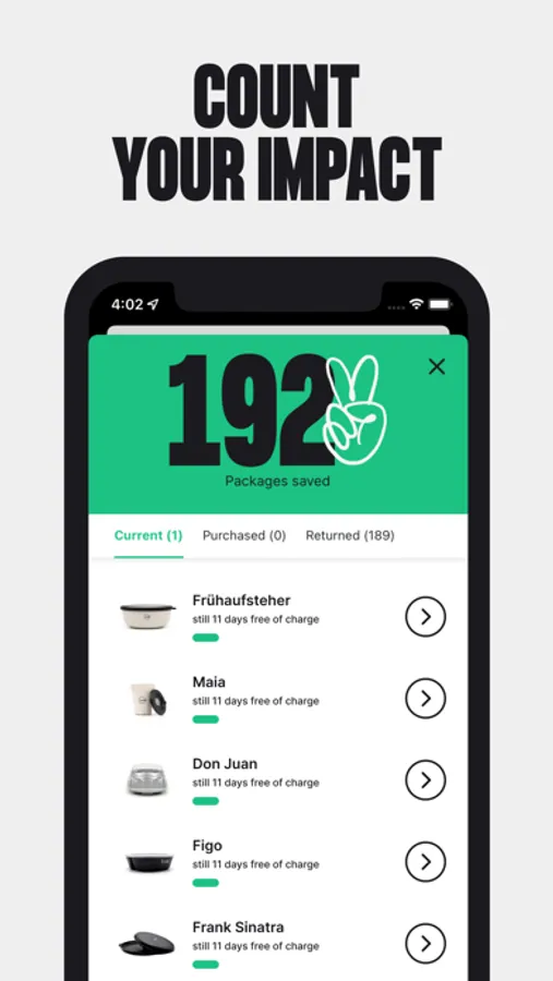 In the app, you can see how many single-use containers you've already replaced with Vytals. So far, together, we have already saved over seven million single-use containers and are proud of each additional one.