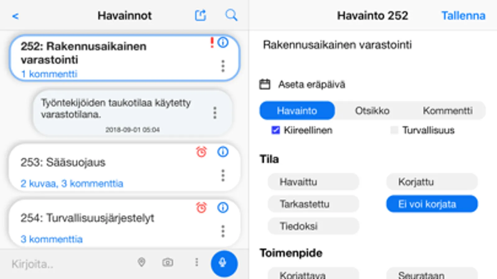Sovelluksella voit tehdä helposti havaintoja, suorittaa tarkastuksia ja jakaa tehtäviä.