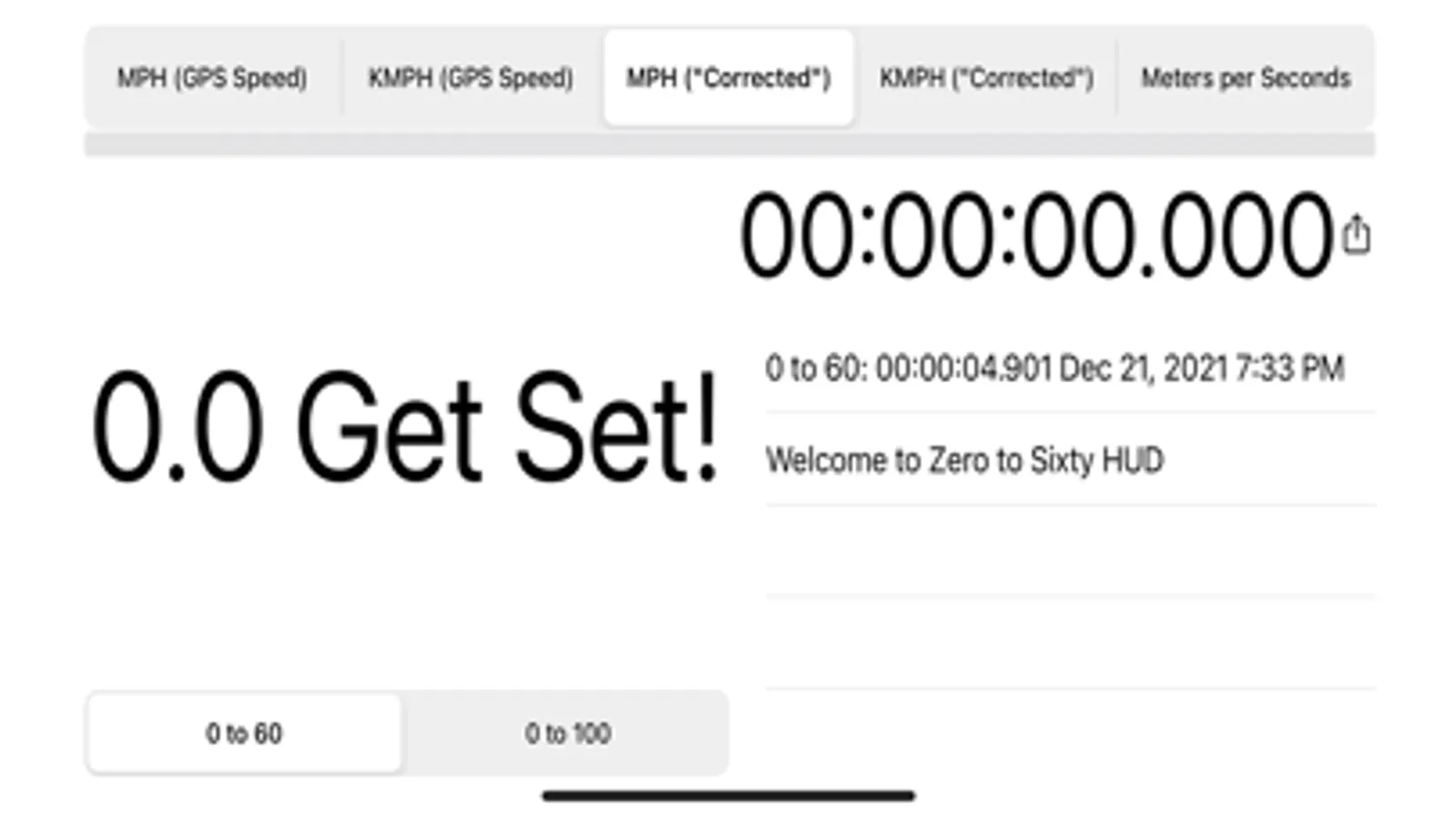 Zero to Sixty HUD is a Head Up Display that times and archives how long it take to drive from 0 to 60 or 0 to 100. When the vehicle is at rest, the timer resets and wait for the vehicle to be in motion. Once the vehicle is in motion the timer starts and when the vehicle reaches sixty miles per hour the time is recorded and spoken aloud. This App uses your GPS location for tracking your speed. For the must accurate experience please make sure your iPhone has GPS location turned on and is accessible to receive GPS data.