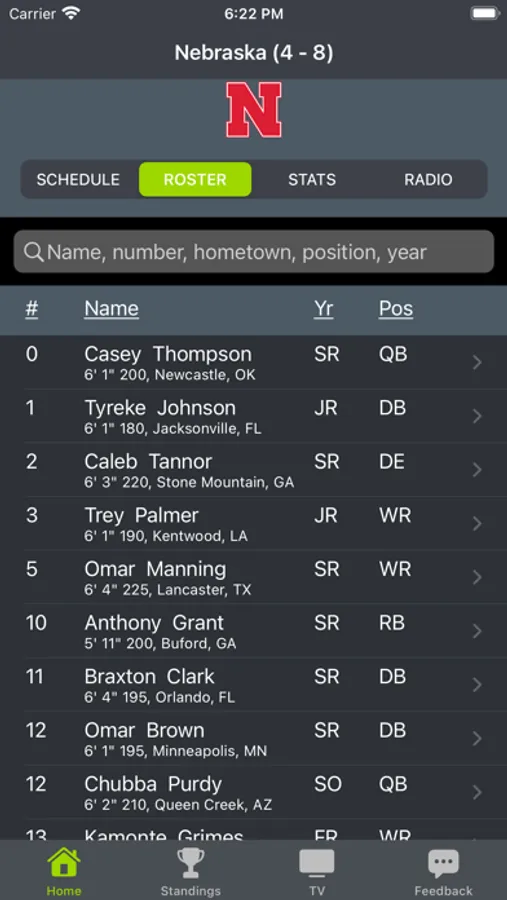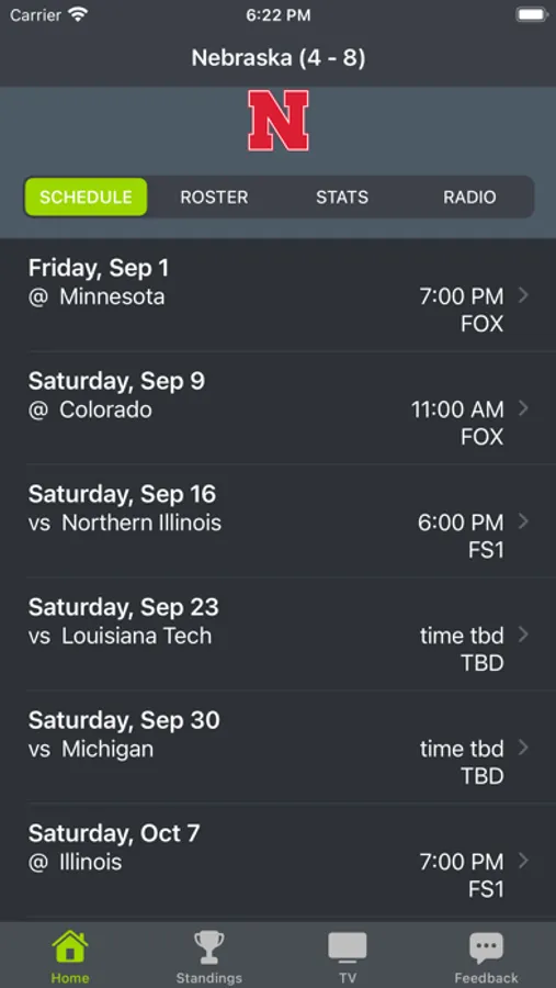 Nebraska Football Schedules provides scores, links to live radio, schedules, tv channels, player profiles, and game matchups in one location.