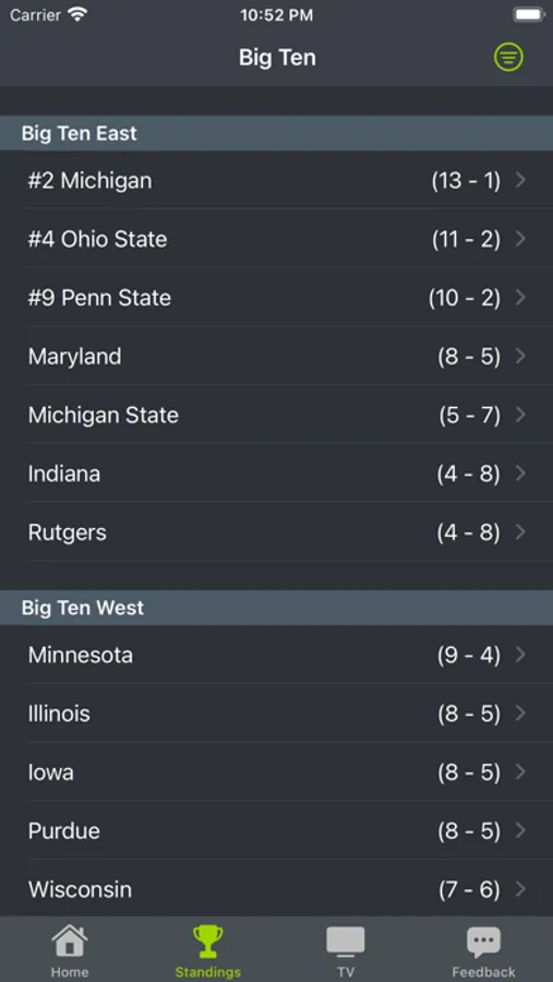"...love the TV schedule. No longer have to look at my cable guide to look at my game schedule during College Game-day."