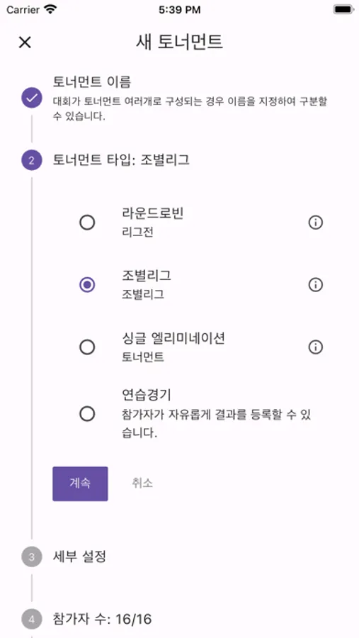 토너먼트 참가자는 각자 결과를 입력할 수 있으며, 모든 사용자가 입력된 결과를 확인할 수 있습니다.