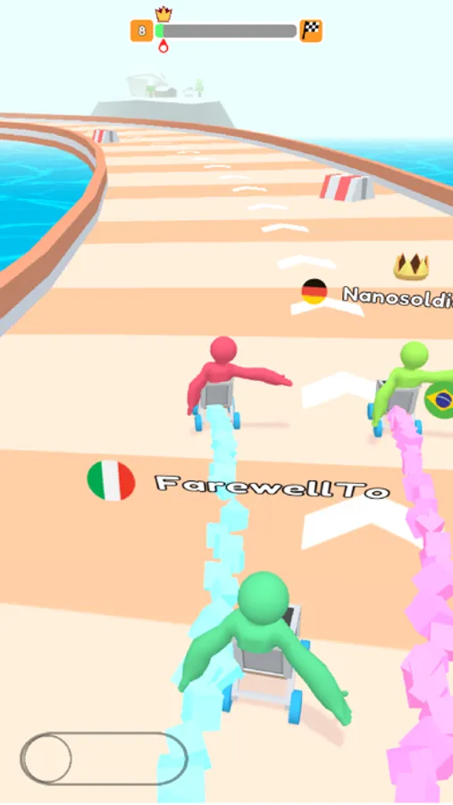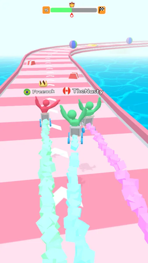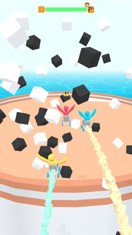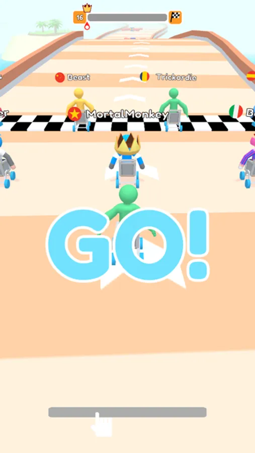 Swipe to control the trolley runs along the racing road. Be hit by others to get fever mode and you will gallop to the destination like a horse. Gain the first place to unlock the new lap and you will become the winner of the racing in the city.