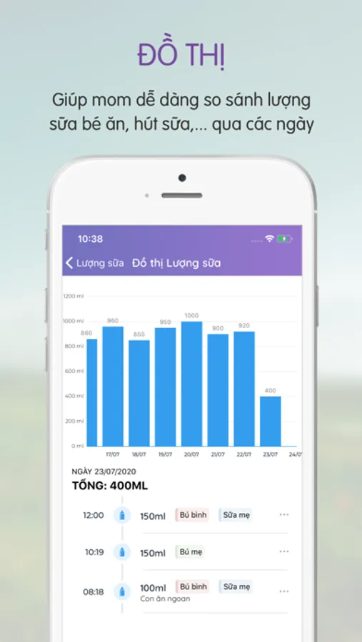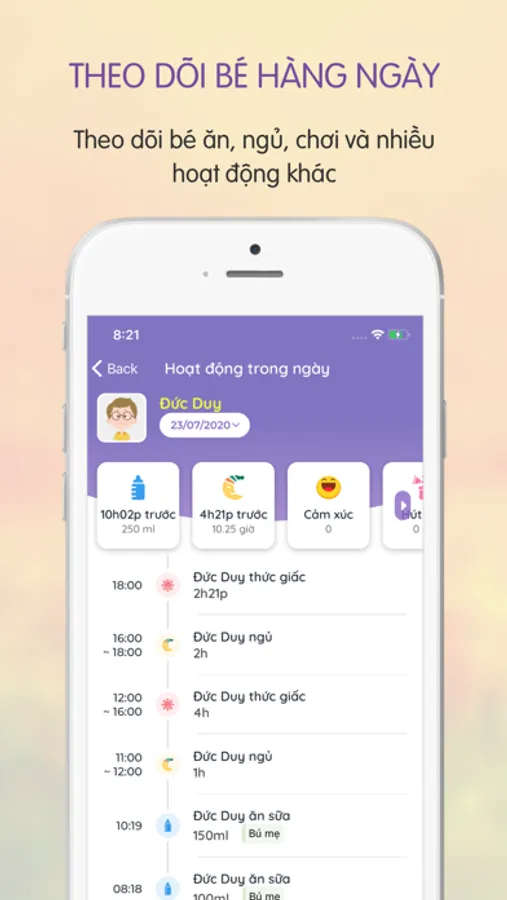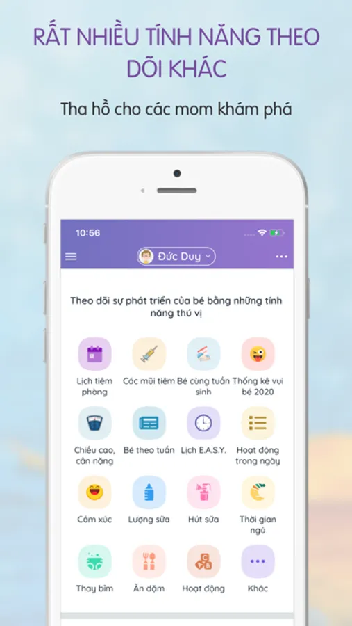 Theo dõi chiều cao, cân nặng, lượng sữa, giờ ngủ của bé và cho biết mức độ phát triển của bé có cân đối hay không.