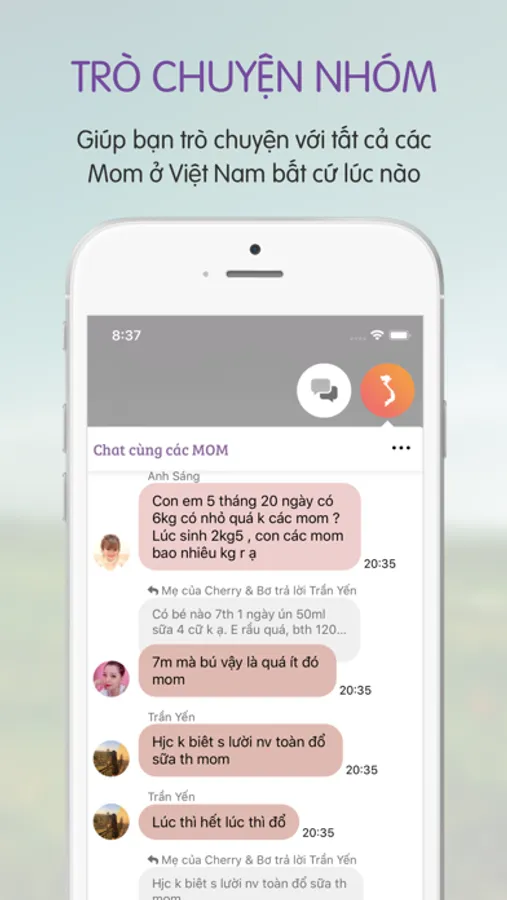 Mom có thể trò chuyện với các Mom khác có con sinh cùng tuần với con của mình.