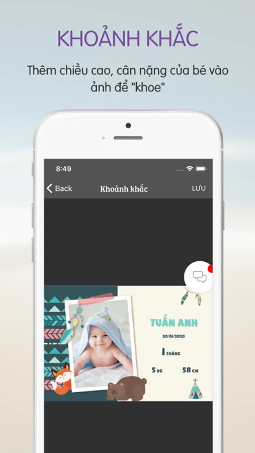 Tạo ra những bức ảnh có các chỉ số chiều cao cân nặng của bé để các Mom có thể khoe trên diễn đàn hoặc cả trên facebook