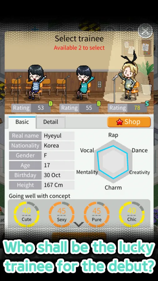 ■ Select talented trainees and make the idol group.