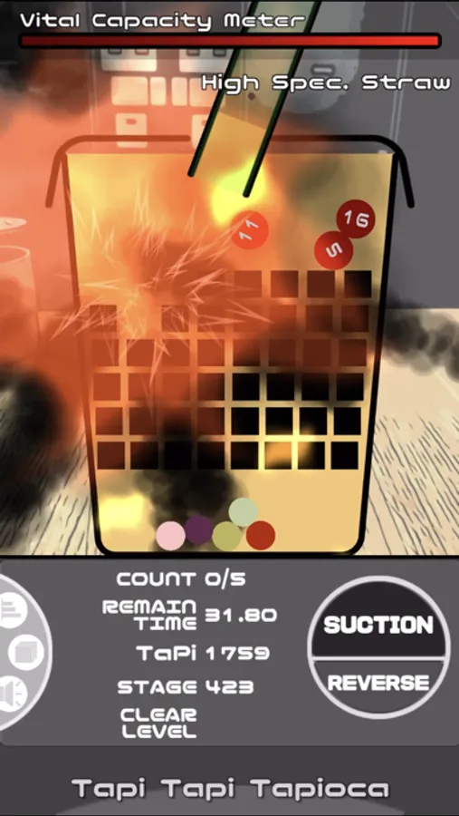 It is a very simple game that clears the stage when the specified number of tapioca is sucked within the time limit at each stage, and the game is over when the time limit is exceeded.