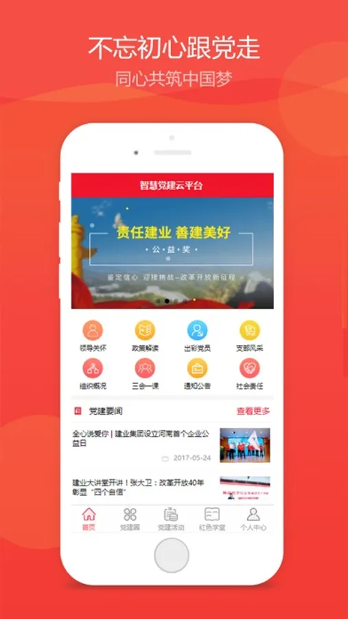 建业“智慧党建”平台,用信息化手段助力集团党建工作水平全面提升。平台主要设置了党建大数据、党建新闻门户、党组织管理、党员管理、党建会议、党建活动、党费管理、红色学堂、党建圈等9大功能板块。建业“智慧党建”实现了党建工作全域化覆盖、精细化管理、规范化执行、便捷化服务、信息化考评、可视化监督“六化”融合管理,具有党建宣传全覆盖、组织上下全联通、党员管理全纪实、党组活动全记录、学习活动全监督、信息分享全智能六大特色。