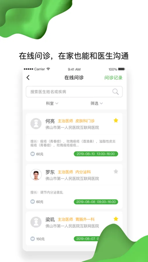 佛山市一医院只需绑定您在医院的就就医卡,不仅就能随时随地查看您在就诊医院的病历、处方和检查报告;您还能及时获得检查结果的推送消息,全面把握治疗和康复过程。