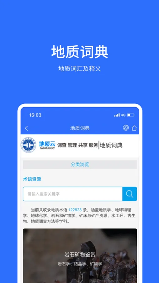地质词典是“地质云”的常用工具用户可以在线查询各类专业地质词汇及释义。
