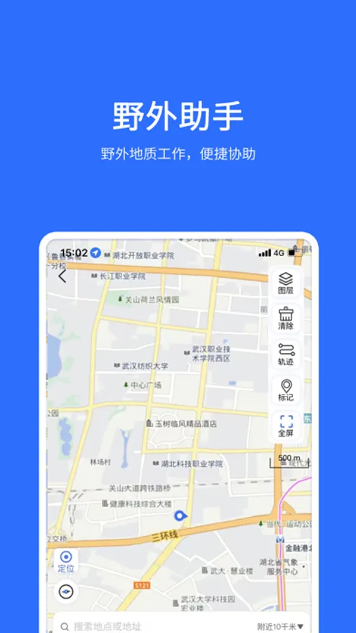 野外助手是“地质云”开发的基于位置的典型服务功能模块。用户通过手机定位功能,可以浏览周边地质图、水文地质图、地质遗迹、钻孔资料、地下水监测点、地质资料等信息,该功能为野外地质工作提供便捷辅助支撑。