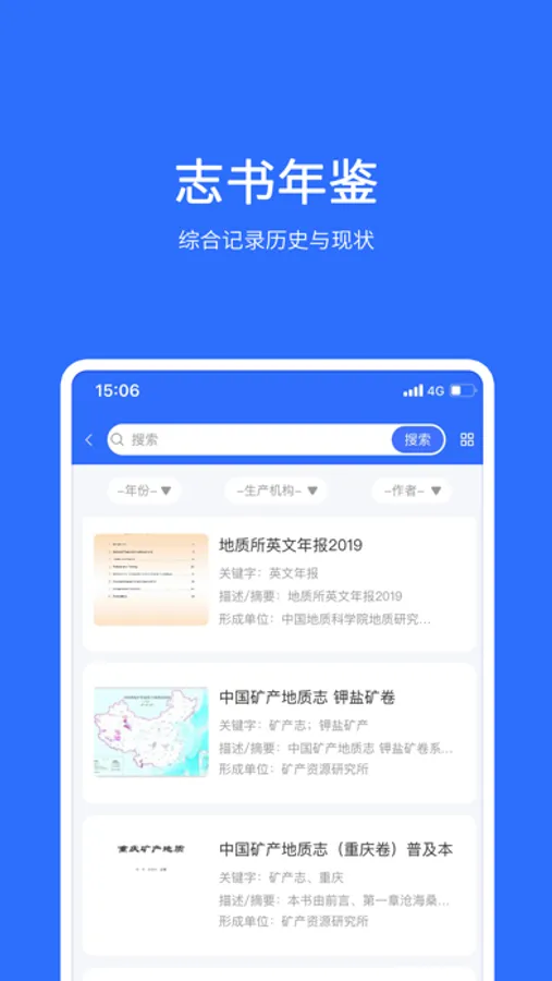 矿产志是“地质云”的常用工具。用户可以在线查询、浏览“地质云”上发布已由地质出版社公开出版的《中国矿产地质志》,提供了陕西省普及版志书的试读本。