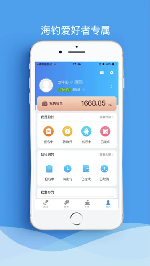 1.在线匹配船位,如果你想出海钓鱼,可选择自己想要的船长和海钓船。时间,船位全部自动刷选;