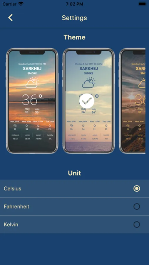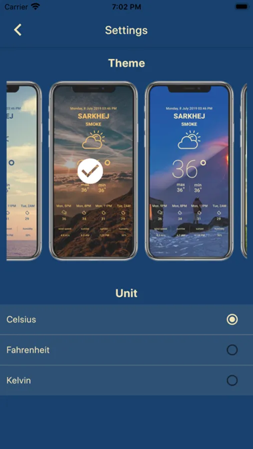 - Celsius, Fahrenheit and Kelvin temperature unit.