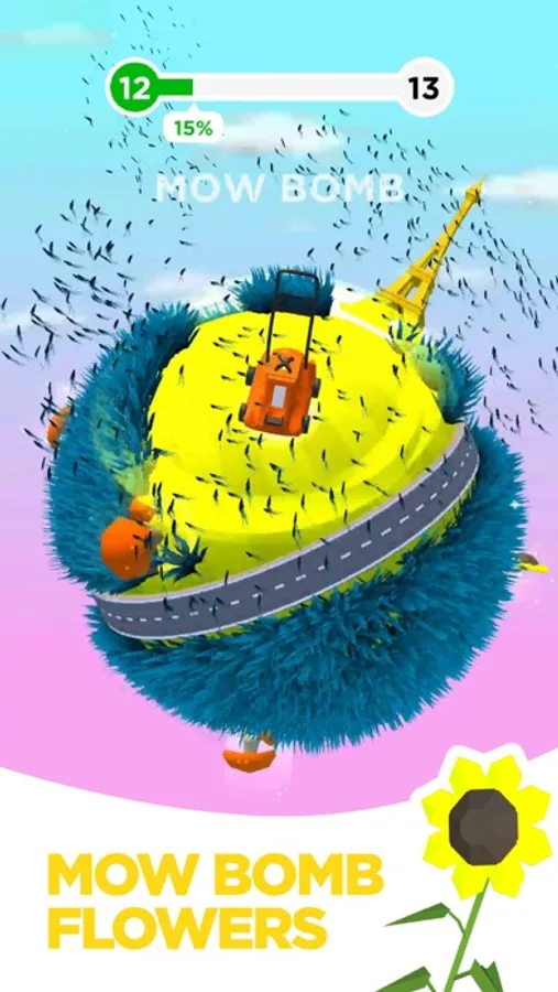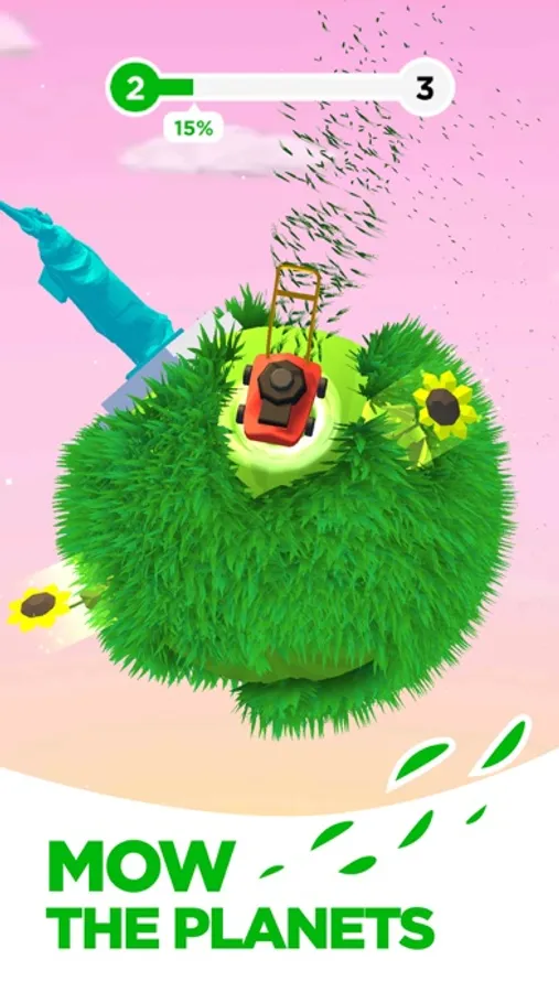 The goal is to completely mow the planet while avoiding buildings, cars, trains or boats.