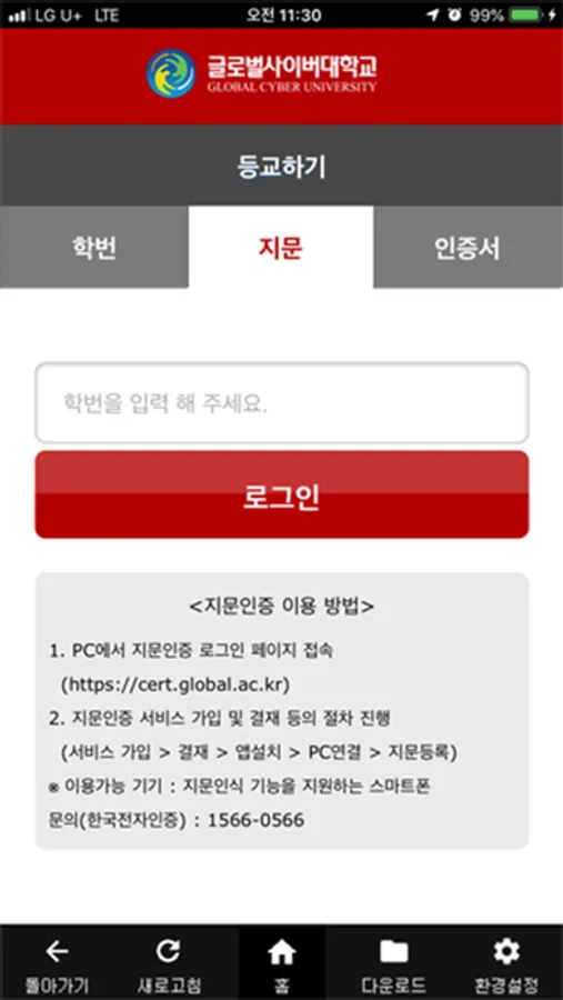 본 앱은 글로벌사이버대학교 학생 및 교직원의 서비스 지원 목적입니다.