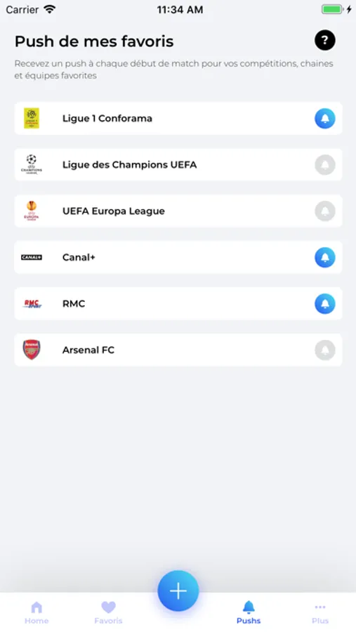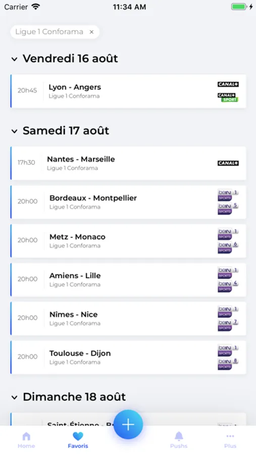 - Des notifications configurables pour ne pas rater le début des matchs de vos équipes, vos compétitions et chaînes préférées