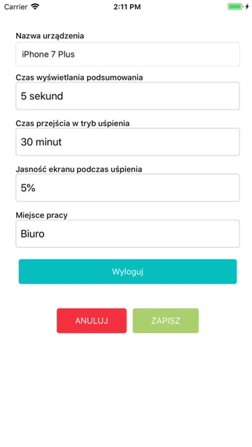 Każda zmiana ustawień w aplikacji wymaga podania hasła pracodawcy. Dlatego masz pewność, że pracownik będzie nie będzie mógł edytować ustawień w aplikacji.