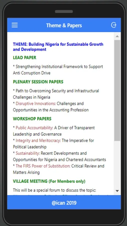 49th Annual Accountants Conference App of The Institute of Chartered Accountants of Nigeria for use by delegates at the conference.