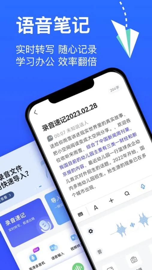 可满足会议、采访、演讲、授课、学习、旅游等多场景下的语音记录和录音转文字需求。