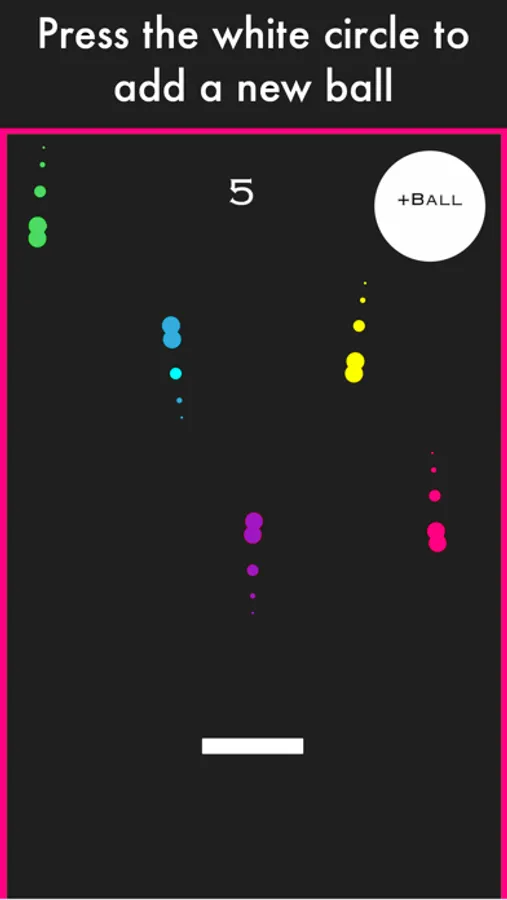 Press the white circle to add a ball. You can only add one ball every 2 seconds, be sure to press it at the right time. How many balls can you play at once?