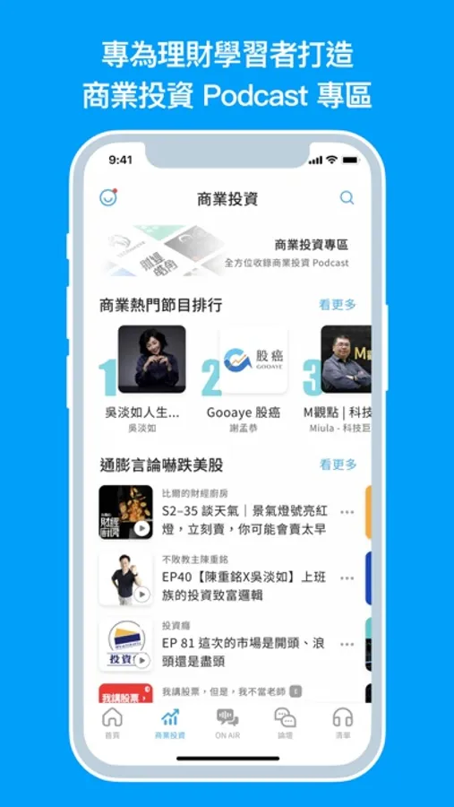 ◆ 專為理財學習者打造,商業投資 Podcast 專區。