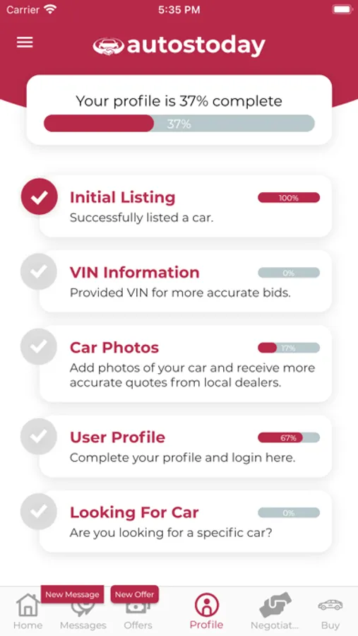 Sell cars in just a few easy steps and one convenient app! Get the best offer on your vehicle in minutes. To sell your car, just upload some basic information - the year, make, model, and trim of your vehicle - then sit back, relax, and let the quotes roll in. Get the most accurate car value by adding more details like photos, mileage, condition, seller’s notes, and VIN information.