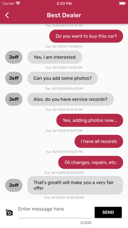 • Message the car dealer privately through the app, call or visit their website when you want to