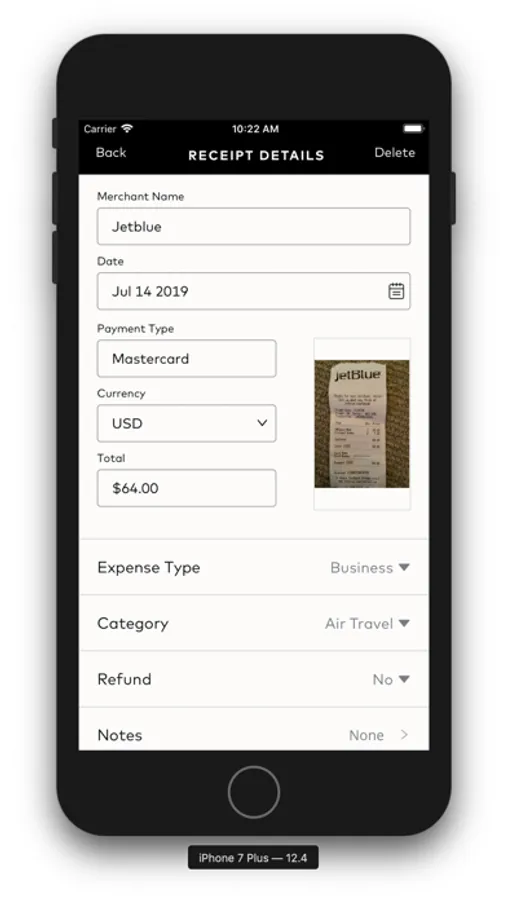 Easily supplement receipt data – Provide additional information such as whether the expense was business vs. personal, expense category, payment type and notes.
