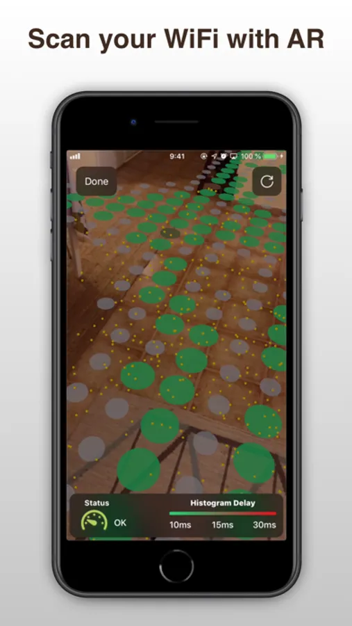 The AR WiFi Map Scanner allows you to analyze the quality of your WiFi connection at your place by using augmented reality technology.