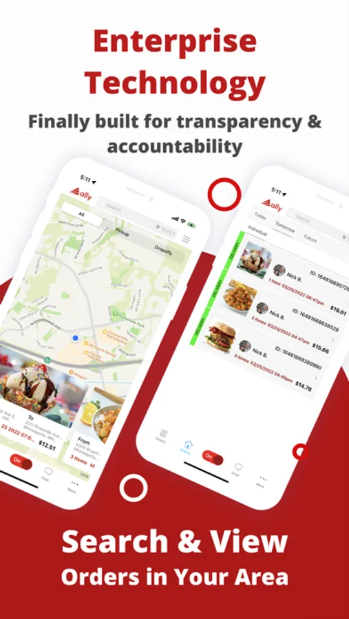 Finally a platform that allows you to earn up to 100% on each delivery. Ally is a Platform that connects providers, such as yourself, with thousands of potential orders in your area. You can deliver food and goods in your local area whenever you want. Unlike other solutions, services and companies, Ally provides a portal (technology) that connects everyone together. This allows us to charge only for our software and platform, allowing you to grow and keep 100% of your earnings.
