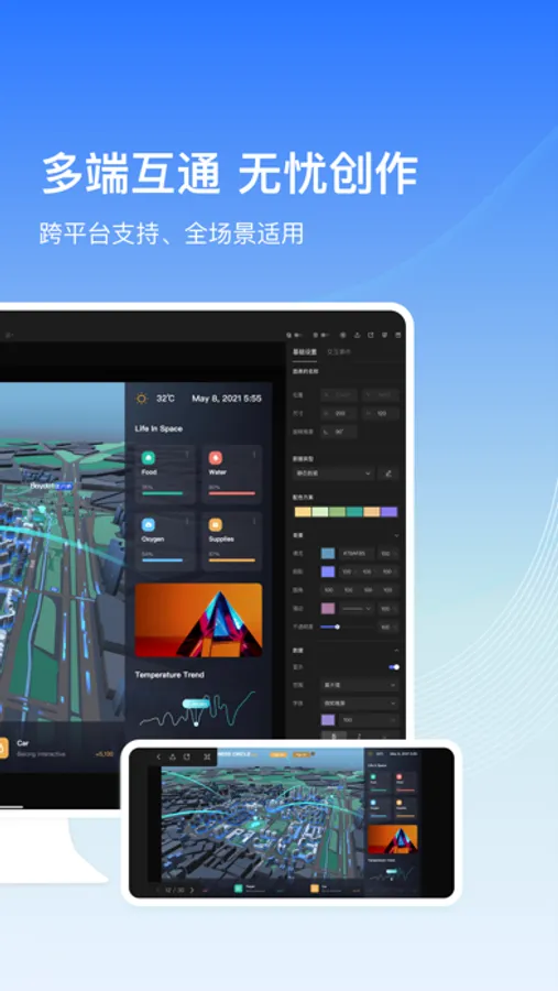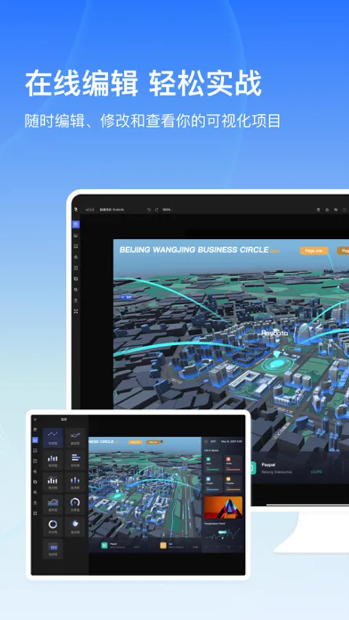 媲美网页端的强大编辑功能,能够让你随时编辑、修改和查看可视化项目:丰富专业的图表组件搭配海量实用的三位地理场景,让决策分析尽在掌握。