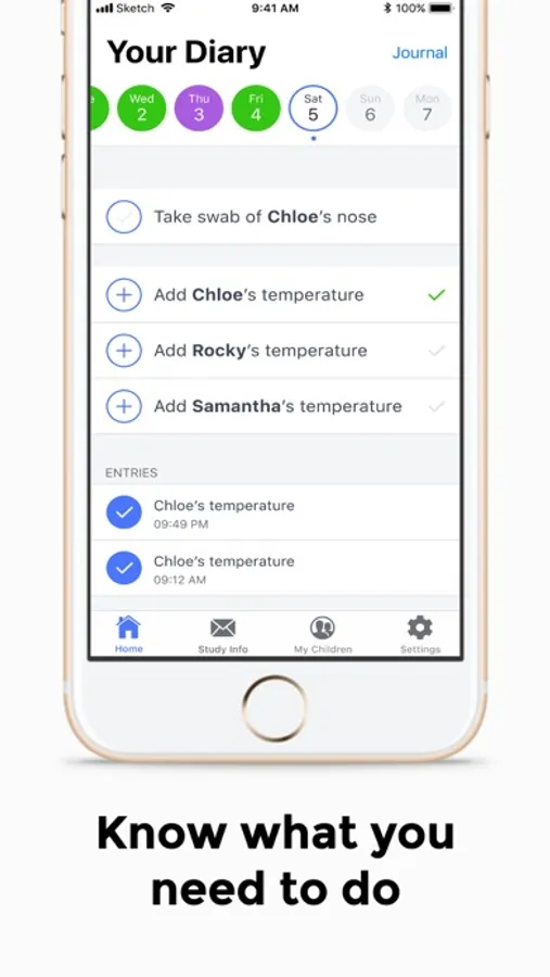 This app is designed to record daily temperature and symptoms for families participating in the AERIAL (Airway Epithelium Respiratory Illnesses and Allergy) research study within the ORIGINS Project.