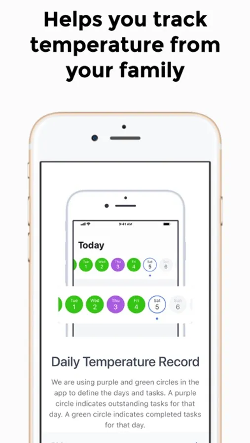Features of the app include: daily reminders set by the parents to take temperatures, record daily temperature with automated time and symptoms (if any), track multiple daily temperature and symptoms separately, temperature and symptoms summaries are generated and can be useful for GP visits, if recorded temperatures and symptoms meet criteria, parents will notified that a swab will be needed for virus testing, AERIAL research team will be altered when swab are needed and will organise for the swab to be taken, if no daily temperatures are recorded for 3 days parents will be sent a reminder, parents can enter daily temperatures stored on the thermometer.